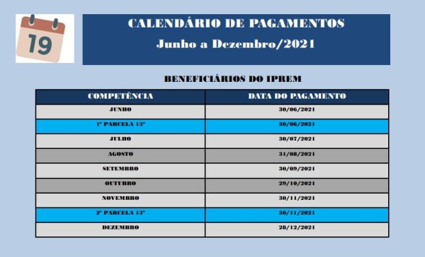 O Instituto de Previdência Municipal de Buritama (IPREM) inicia no dia 30 de junho, o pagamento dos benefícios referentes ao 13º salário.